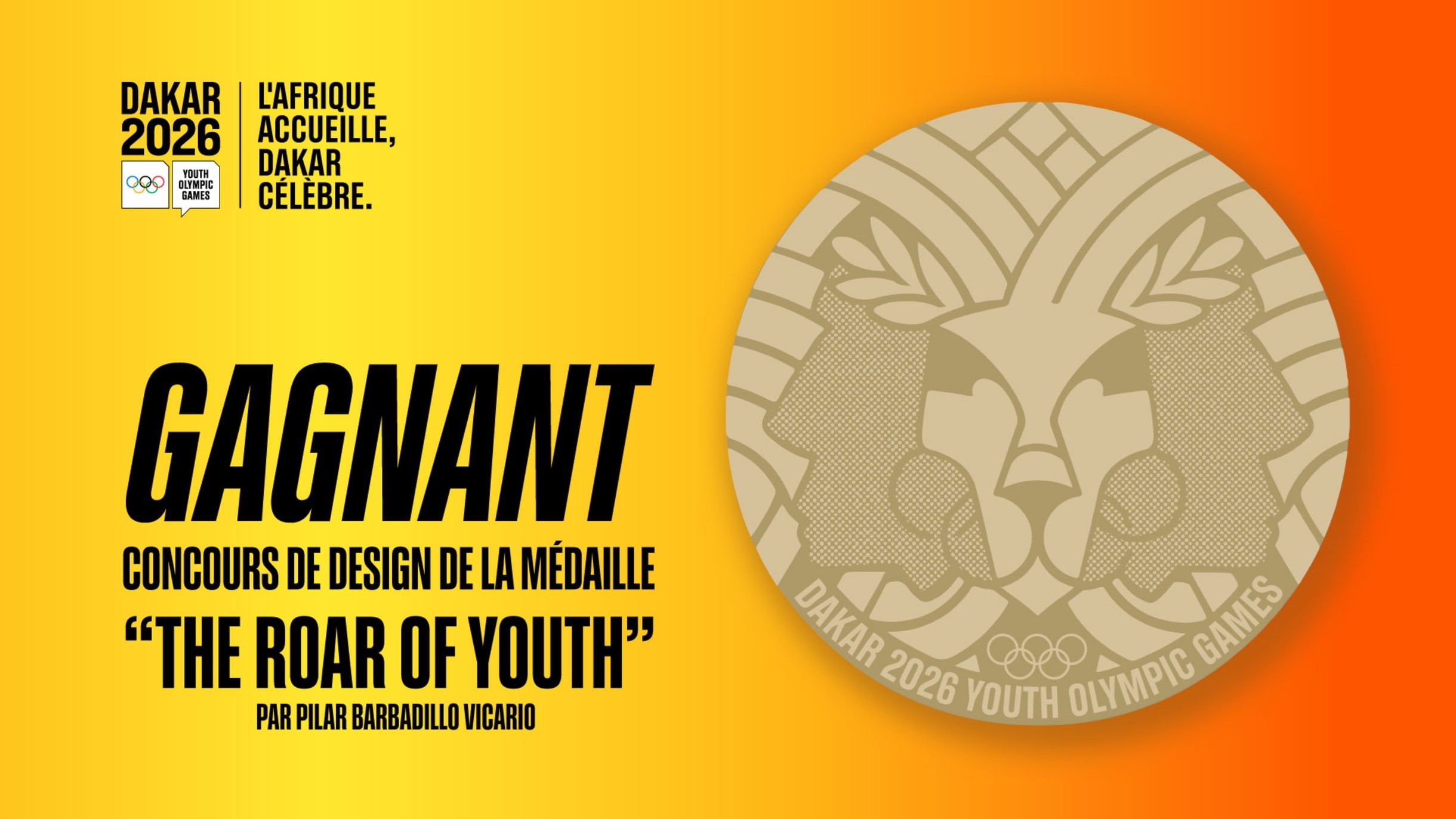 - Le motif "The Roar of Youth" de la designer espagnole Pilar Barbadillo Vicario, 26 ans, a été sélectionné pour l'avers des médailles des JOJ de Dakar 2026.
